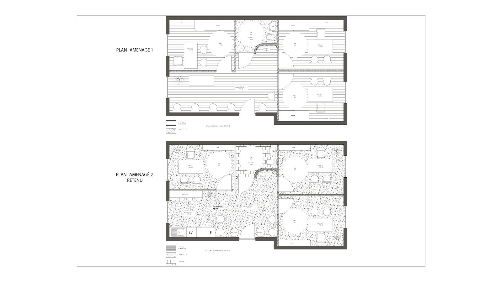 Le projet retenu adopte une esthétique minérale et végétale : béton ciré, enduits, bois clair et lumière maîtrisée.